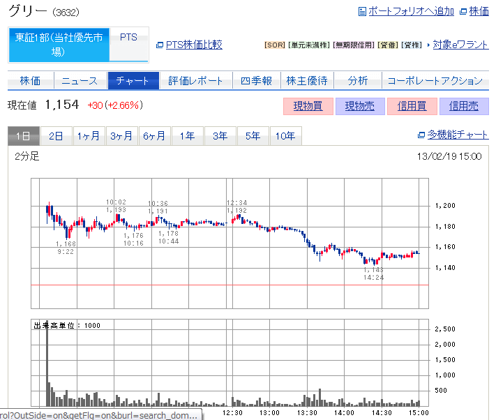 グリー 信用売り +4,893円昨日仕込んだ銘柄