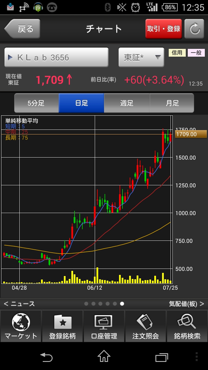 KLabの株を取引したことがありますか?みんかぶアセットプランナーに取引口座を連携すると売買履歴をチャート上にプロットし、自分の取引を視覚的に確認することができます。