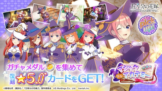 株式会社enish(本社:東京都港区、代表取締役社長:安徳 孝平、以下enish)は、2025年1月24日(金)より、アニメ「五等分の花嫁」初となるゲームアプリ『五等分の花嫁 五つ子ちゃんはパズルを五等分できない。』にて、週刊少年マガジン編集部完全監修のゲームオリジナルストーリーをお楽しみいただける復刻イベント「五つ子ちゃんのマジックアカデミー~ドキドキの魔法は門外不出!~」を開催いたします。