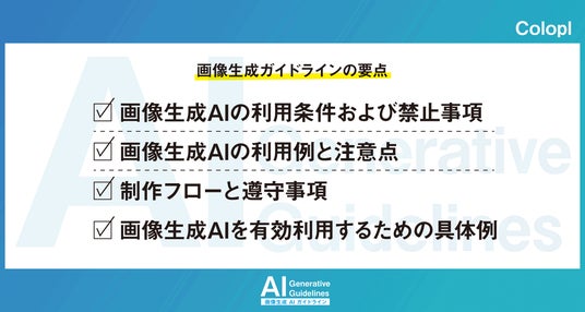 また、従業員が安全に生成AI技術を活用し、創造性を高められるよう、コロプラ社内における利用ルール「画像生成AI利用ガイドライン」を策定しました。