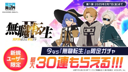 ゲーム内では、1月27日(月)より「1stシーズン」第1弾として「無職転生II ~異世界行ったら本気だす~」が登場しており、ルーデウスやロキシー、シルフィエットがキャラクターとして登場しております。また、「1stシーズン」登場作品の主人公たちから2体のキャラクターが無料で貰えるキャンペーンを実施しており、ゲーム開始時にチュートリアル突破でガチャ30連分が貰えるなど様々なプレゼントもご用意しております。