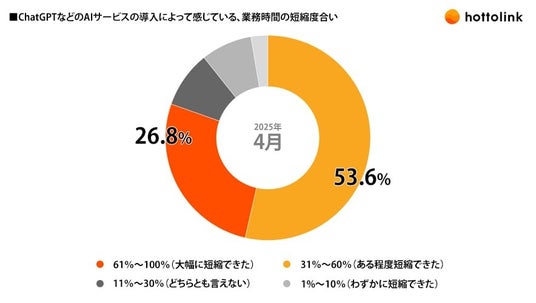 ChatGPTなどのAIサービスの導入によって感じている、業務時間の短縮度合い