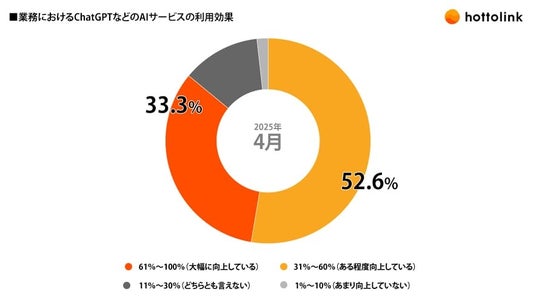SNSマーケティング支援サービスを提供する株式会社ホットリンク(本社:東京都千代田区、証券コード:3680、代表取締役:檜野安弘、以下ホットリンク)は、生成AIツールの活用状況について、2025年4月度の社内調査を実施しました。本プレスリリースでは、当社における業務でのAI活用実態とあわせて、AIを日常的に使う組織づくりに向けた取り組みをご紹介します。