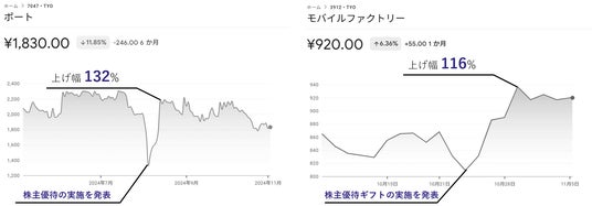 これまでのプレスリリースにおいても、ポート株式会社(代表取締役社長CEO:春日 博文、コード番号:7047)、株式会社モバイルファクトリー(代表取締役:宮嶌 裕二、コード番号:3912)に株主優待ギフトを導入いただいたことを、既にお伝えさせていただいております。