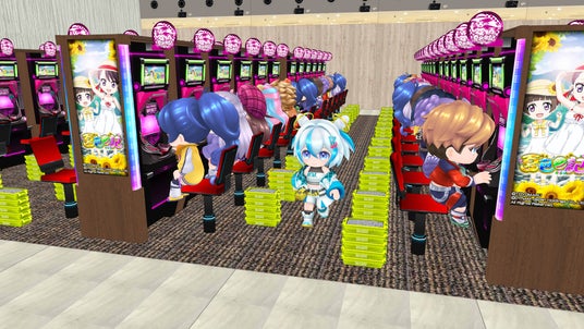 本サービスでは、単に1機種の出玉を競うだけではなく、実際のホール同様、高設定の台を探して歩いたり、遊技結果に一喜一憂したり、仲間とタッグを組んで「常連さん」として楽しくプレイしたりと、これまで以上にリアルさを追求。強者の条件が、リアルなプレイ姿勢により依存する設計となっており、パチンコ・パチスロが好きな人ほど、「スロスピ」ワールドの奥深さを実感していただけるでしょう。