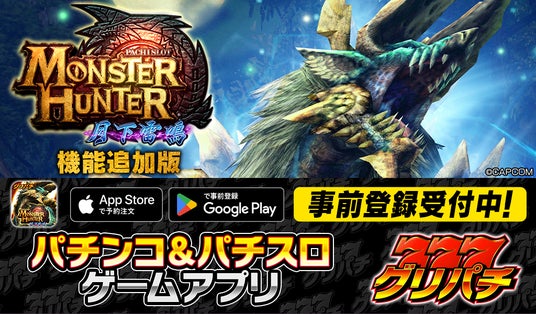 2014年(※)からグリパチ内にて好評配信中の機種アプリ『パチスロ モンスターハンター月下雷鳴』を、グリパチの様々なコンテンツ・機能に対応した機能追加版として新たに配信開始いたします。
