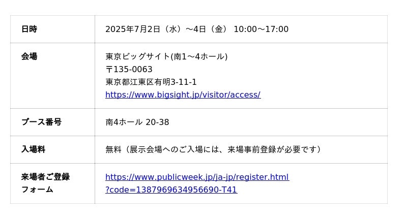 「AmiVoice Communication Suite」は、2025年7月2日(水)~4日(金)に東京ビッグサイトにて開催される自治体・公共Week2025「第5回 自治体DX展」にて展示予定です。