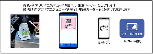 「交通系ICカード」(Kitaca・Suicaなど)や、「流通系ICカード」(WAON・nanaco)をお持ち の方は、専用アプリと「紐付け連携」すると、そのICカードで乗り降りが可能となり、スマホを操作することなく「カード1枚」でキャッシュレス決済が完結します。