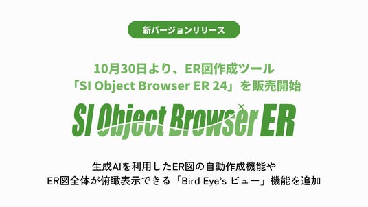 株式会社システムインテグレータ(本社:さいたま市中央区、代表取締役社長 CEO:引屋敷 智、東証スタンダード:証券コード3826)は、2024年10月30日より、ER図作成ツール「SI Object Browser ER 24」を販売開始します。また、これに伴いSI Object Browser ERのサブスクリプションライセンスも同時に販売開始します。