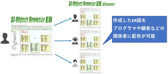 「SI Object Browser ER Viewer」は、SI Object Browser ERで作成したER図の閲覧専用ソフトウェアです。作成したER図をプログラマや顧客などの関係者に共有することができます。