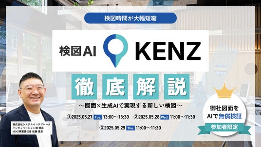 株式会社システムインテグレータ(本社:さいたま市中央区、代表取締役社長:引屋敷 智、東京証券取引所スタンダード市場 証券コード3826、以下「当社」)は、設計図面の検図業務を大幅に効率化する新しいAIサービス「KENZ」を2025年7月1日にリリースします。