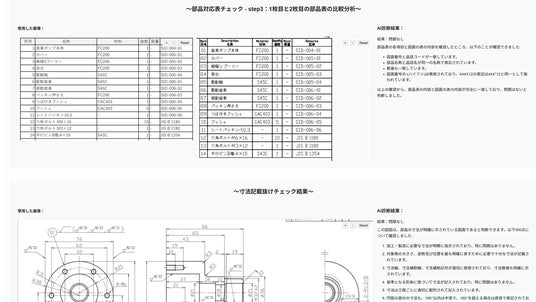 - 複数ドキュメント間の部品名、図面番号、型番の整合性チェック