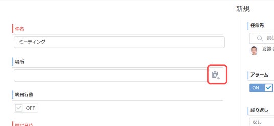 予定の作成、編集時に選択している施設の名称を[場所]項目に転記できるボタンが追加されました。