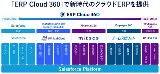 ERP Cloud 360は、Salesforceプラットフォームを共通基盤とし、コストを抑えたアプリケーション開発の実現やAIをはじめとした最新技術の活用により、中堅企業の抱える課題の迅速な解決を目指しています。本コンソーシアムは、技術情報の共有や各社の業務システムを連携させるための交流の場として設立されました。