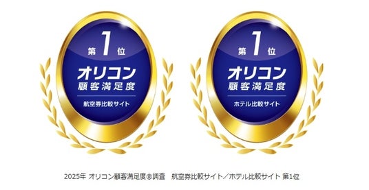 トラベルコが2025年 オリコン顧客満足度(R)ランキング「航空券比較サイト」「ホテル比較サイト」において2年連続で総合1位を獲得