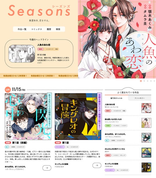 株式会社はてな(代表取締役社長:栗栖義臣/本社所在地:京都市中京区)は、株式会社文藝春秋(代表取締役社長:飯窪成幸/本社所在地:東京都千代田区、以下「文藝春秋」)が本日2024年11月15日に公開したWebマンガサイト「Seasons(シーズンズ)」に、当社開発のマンガビューワ「GigaViewer for Web」が採用され、提供を開始したことをお知らせします。