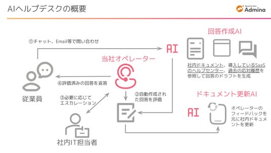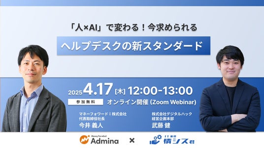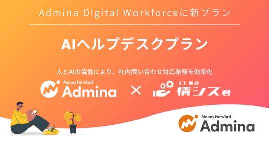 マネーフォワードi株式会社は、情シス業務をアウトソースできるサービス『Admina Digital Workforce』に、新たに「AIヘルプデスクプラン」を追加します。本プランは、情シスのエキスパート人材と、AIによる迅速なレスポンスや、回答作成の効率性を融合させたヘルプデスクサービスで、社内問い合わせ業務の効率化と質の向上を実現します。