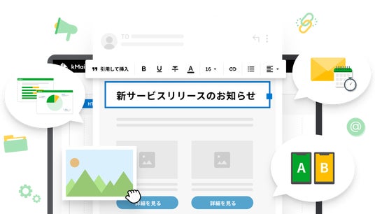 kMailerでは、メールマーケティングシステムや分析システムを導入・運用するには知識や時間が足りないという方でも、効果的なメールマーケティングをカンタンに始められる機能を実装しています。今後も随時アップデートを予定しています。