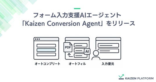 株式会社Kaizen Platform(本社:東京都港区、代表取締役:須藤 憲司、以下「Kaizen Platform」)は、生成AIを活用してフォーム入力を自動化するフォーム入力支援AIエージェント「Kaizen Conversion Agent」を、「Magical UX」シリーズの新サービスとして提供開始しました。名刺・履歴書・車検証などの画像/PDF/URLを解析し、ブラウザ標準のオートコンプリートと組み合わせることで、“入力作業”そのものを生成AIが代行してくれる"迷わない・待たない・書かない"フォーム体験を実現しました。JavaScriptタグを1行追加するだけで導入でき、初入力率14~31%改善・CVR10%以上向上という実証結果が得られています。