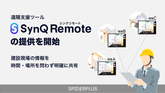 建設DXサービス「SPIDERPLUS」を提供するスパイダープラス株式会社は、株式会社クアンド(本社:福岡県北九州市、代表取締役CEO:下岡 純一郎)が開発提供する遠隔支援ツールSynQ Remote(シンクリモート、以下SynQ Remote)の取り扱いを開始し、本日より当社営業経由での有償提供を開始いたします。