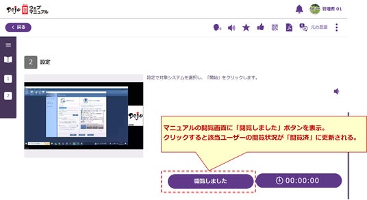マニュアル上に閲覧したことを知らせるボタンを設置