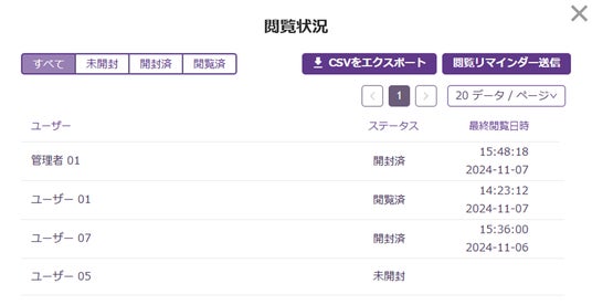 - 閲覧状況管理機能:新しいマニュアルの公開や、マニュアルの更新を行った際に、閲覧者へ通知を送ることが可能になりました。また、閲覧者ごとにマニュアルの閲覧状況が表示できるようになり、リマインダーの送信も可能になりました。