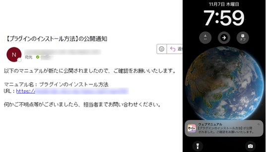 マニュアルの公開通知例(メール、アプリのプッシュ通知)