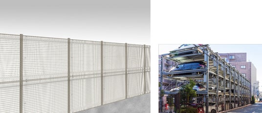 「機械式駐車場向けフェンスII マスフィーノ」 と設置イメージ