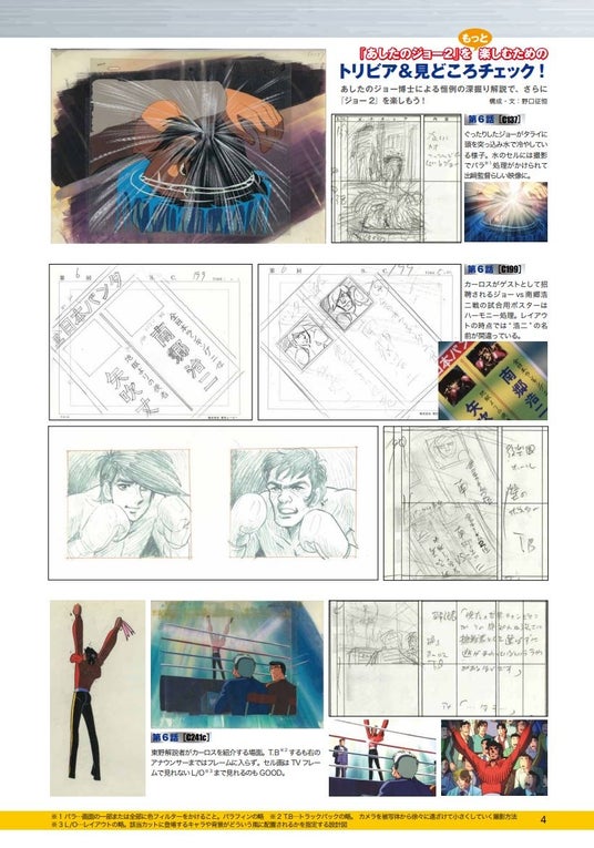 野口氏がジョーとカーロス・リベラの戦いを深掘り。絵コンテやセル画の解説をはじめ、「実はスタッフの名前が」「登場人物のモデルは……」など、マニア垂涎の情報がてんこ盛り。