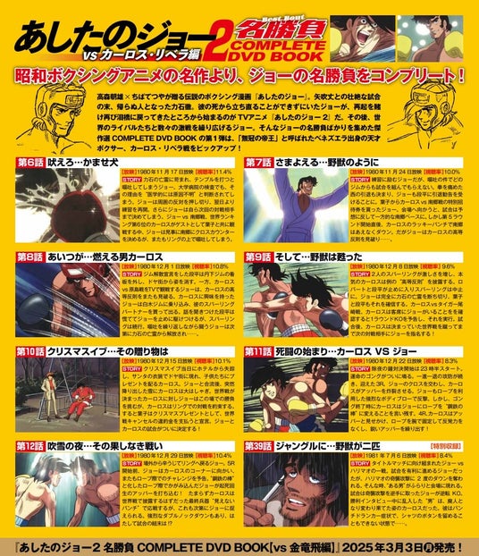 力石徹の死後、ジョーを再起させた男・カーロス・リベラ編「『あしたのジョー2名勝負COMPLETE DVD BOOK』[vsカーロス・リベラ編]」本日発売 & [vs金竜飛編]情報解禁