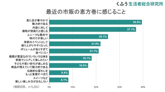 最近の市販の恵方巻は約4割が「見た目が華やかで魅力的」と評価