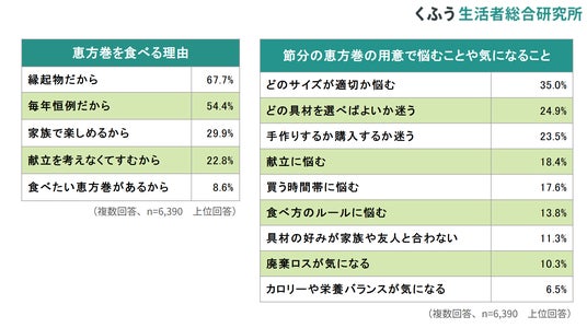 生活者と社会の生活満足度向上に資する研究・発信を行うくふう生活者総合研究所(以下、くふう総研)は、節分・恵方巻に関する調査を実施しました。