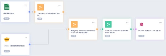 ブロックを繋げるような簡単マウス操作で、Dr.Sumとのデータ連携を実現