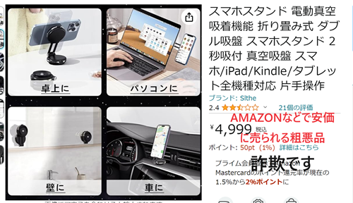 Amazonや楽天で安価に売られている中華製粗悪品が