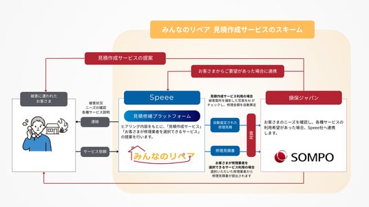 株式会社Speee(本社:東京都港区、代表取締役:大塚英樹、東証スタンダード市場:4499、以下 Speee)は、損害保険ジャパン株式会社(代表取締役社長:石川耕治、以下損保ジャパン)と共創し、建物修理業者の紹介制度「みんなのリペア」をリニューアルいたしました。