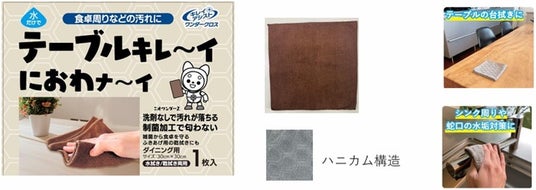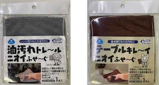 「キレイアシストワンダークロス」は、テーブルにこぼしたケチャップやラー油等の食品汚れ、コンロの油汚れや床のお掃除後に、クロスに付着した「洗っても落ちにくい汚れ」を水洗いでしっかり落としやすくします。さらに、クロスとして必要な汚れの拭き取りやすさ、吸水性を損なわない且つクロスに付着する細菌の増殖を抑制する特殊な加工を施した、多機能マイクロファイバークロスです。