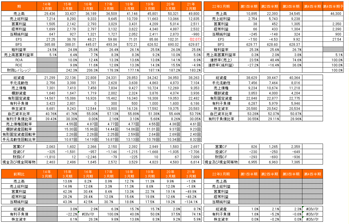 過去数年間の成績を見て、収益性はどうか、資産効率はどうか、財務内容はどうかを時系列で把握してみないと、なかなか投資に踏み込めない性格なので、ついつい色々調べてしまいます。