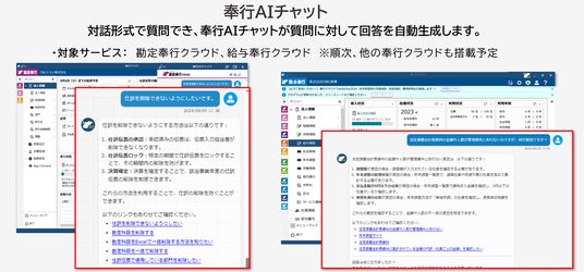 まずは『勘定奉行クラウド』『給与奉行クラウド』から搭載し、順次、他の『奉行クラウド』にも搭載していきます。OBCは「奉行AIチャット」の導入により、ユーザー様に迅速で効率的なサービスを提供し、速やかな課題解決を目指していきます。