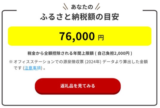 図3:源泉徴収票等から自動計算される、ふるさと納税額の目安例