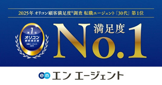 エン・ジャパン株式会社(本社:東京都新宿区、代表取締役社長:鈴木孝二)が運営する、入社後の活躍までをサポートする転職エージェント『エン エージェント』(https://enagent.com/)は、株式会社oricon MEが発表した「2025年 オリコン顧客満足度(R)調査 転職エージェント」ランキングの「30代」部門にて、満足度第1位に選出されました。以下、概要をご報告します。