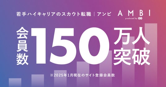 エン・ジャパン株式会社(本社:東京都新宿区、代表取締役社長:鈴木孝二)が運営する若手ハイキャリアのスカウト転職『AMBI(アンビ)』(https://en-ambi.com/)が、会員数150万人を突破したことをご報告します。今後もサイトの運営を通じて、若手ハイキャリア層の転職、及び事業成⾧を目指す企業の採用活動を支援してまいります。