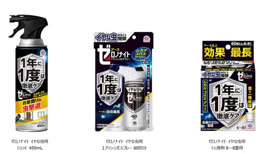 アース製薬株式会社(本社:東京都千代田区、社長:川端克宜、以下 「アース製薬」)は2月3日(月)に、家の周りの害虫を徹底ケアできる『ゼロノナイト イヤな虫用シリーズ』から、シリーズ初のエアゾールタイプで、速効性と持続力の両立した不快害虫用『ゼロノナイト イヤな虫用ジェット』を全国で発売しました。