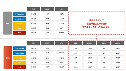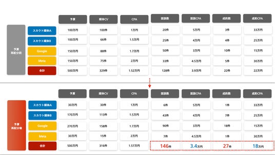 面談や成約など後方指標を起点に広告のアロケーションを行うことで、事業全体の面談数や成約数の改善につながります。