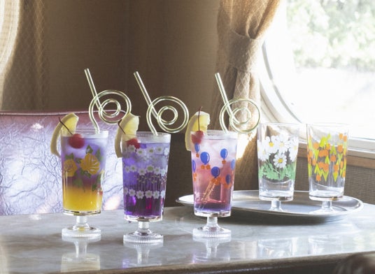 新柄「花だん」の発売は、チョコレートを主力とする洋菓子メーカー 株式会社メリーチョコレートカムパニー(本社:東京都大田区、社長:小屋松 儀晃 以下、メリー)のバレンタイン限定ブランド「はじけるキャンディチョコレート。」のお声がけから始まりました。レトロ喫茶をコンセプトにしたかわいいパッケージと、パチパチ弾ける食感が楽しいメリーの人気商品「はじけるキャンディチョコレート。」とアデリアレトロのグラスウェアを一緒に撮影したSNS投稿をよく見かけることから、親和性が高いと感じコラボレーションすることになりました。