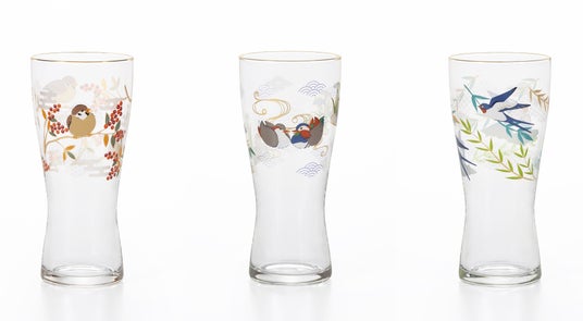 ビアグラス(雀と南天、鴛鴦と菖蒲、燕と柳)品番:6841、6842、6843