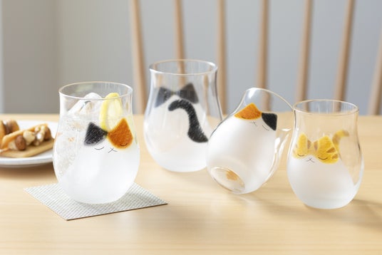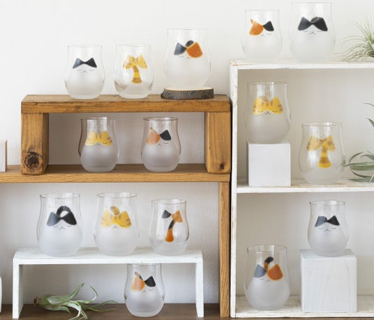 ~丸みのあるグラスに、にゃんこのおすましポーズをぐるりとデザイン~