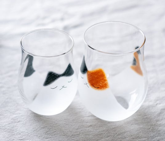 表は猫の顔、裏にはしっぽが!グラスが猫になったみたい