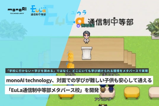 monoAI technology株式会社(本社:兵庫県神戸市、代表取締役社長:本城嘉太郎、東証グロース市場:証券コード5240、以下「当社」)は、株式会社アットマーク・ラーニング(本社:東京都品川区、代表取締役:日野公三、以下「アットマーク・ラーニング社」)が、2025年4月に開校する新たな教育機関「EuLa通信制中等部(※1)」に、2Dメタバース『ZEP』を活用したメタバース校を開発・提供します。本プロジェクトは、発達障害やギフテッド、対面での学校生活に困難を感じる生徒が、自分に合った学び方で成長し、未来を切り拓ける環境をメタバースで実現します。