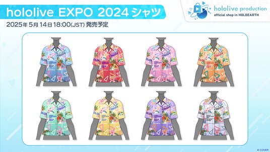 「hololive SUPER EXPO 2024」キービジュアルでタレントたちが身にまとっていたアロハシャツを全8種類販売します。