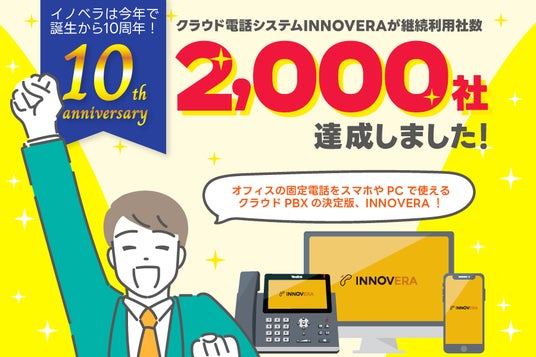 電話のDXを推進する株式会社プロディライト(大阪市中央区:代表取締役社長 小南 秀光、証券コード:5580、以下プロディライト)は、2025年5月14日、クラウドPBX「INNOVERA」の継続利用社数が2,000社を突破したことをお知らせします。